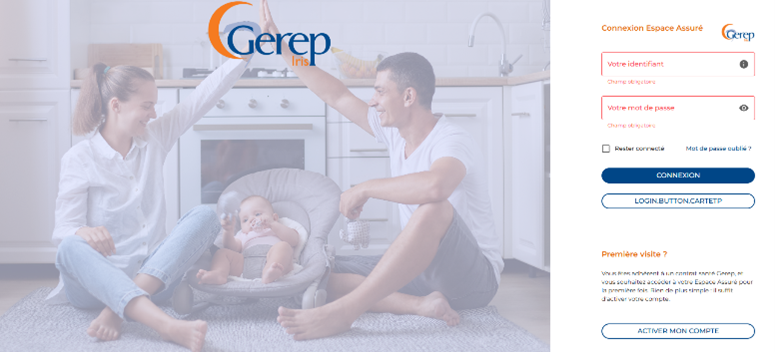 Pour accéder à votre Espace IRIS, il suffit de vous rendre sur le site officiel de Gerep et de cliquer sur « Espace assuré ». Lors de votre première connexion, vous pourrez activer votre compte à l’aide de votre numéro d’adhérent, qui vous aura été transmis dans un mail de bienvenue.