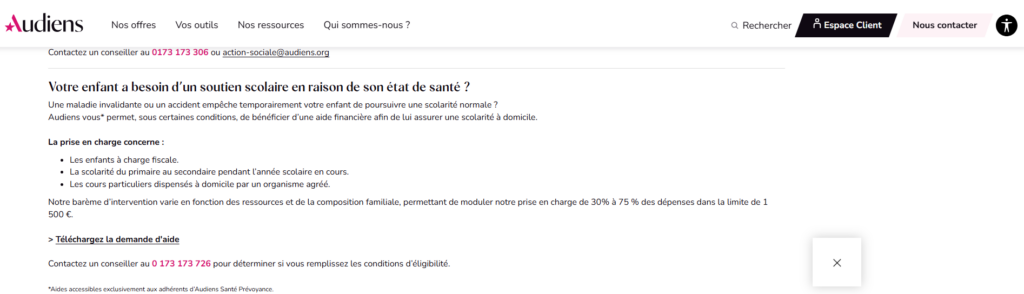 - Téléchargé la demande d’aide : https://www.audiens.org/files/live/sites/siteAudiens/files/03_documents/particulier/Documents-contractuels/Formulaire-Soutien-scolaire.pdf